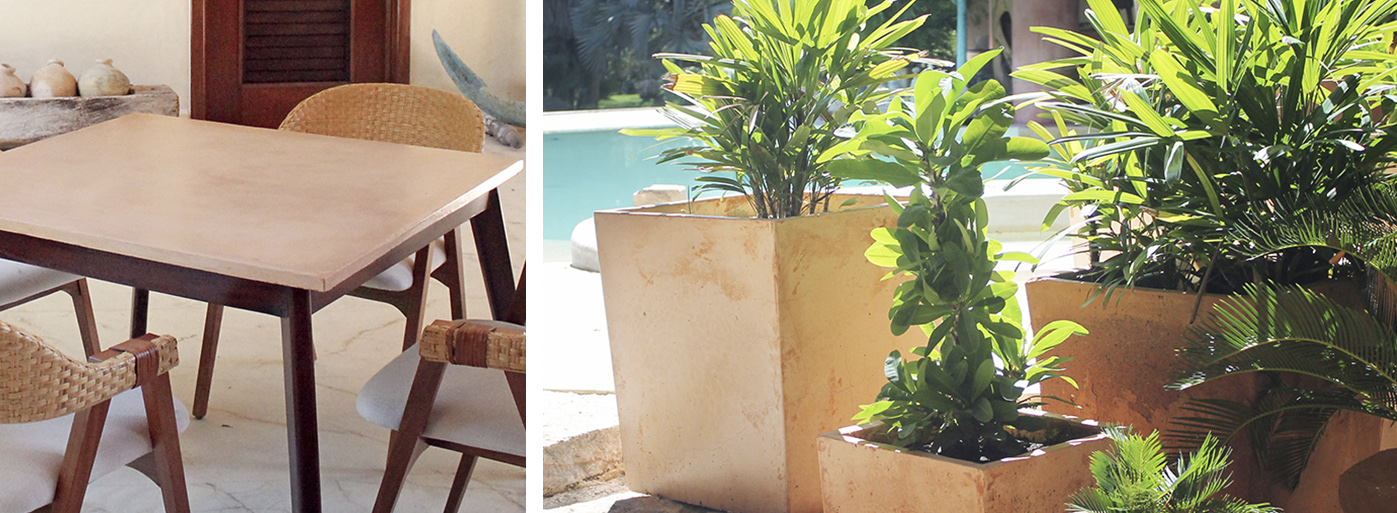 Mesas de comedor, macetas, escritorios, mesas laterales, mesetas de cocina, barras, lavabos hechos a la medida y más